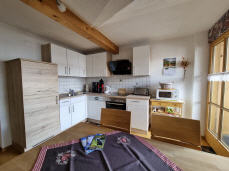 Komfortable Küche mit Tiefkühlfach, Mikrowelle, Kaffeemaschine, Senseomaschine und Wasserkocher, Herd mit Ceranfeld, Spülmaschine